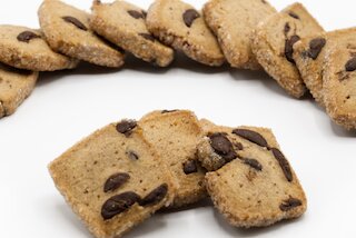 Dieser Keks macht Lust auf Weihnachten: mit Weizenmehl, Butter, Schokolade, brauner Rohrzucker, Mandeln, Ei, Zitrone, Salz und weihnachtlichen Gewürzen